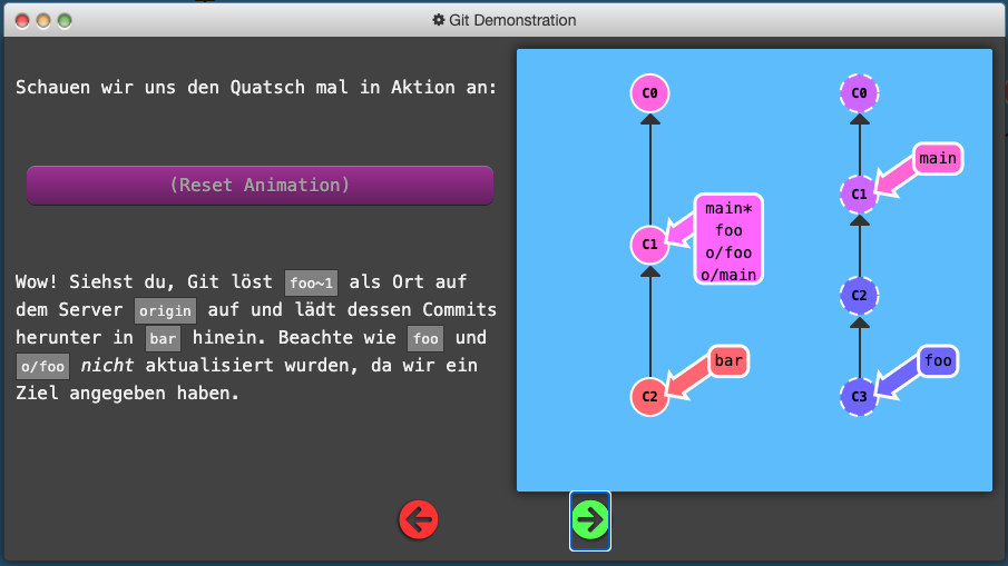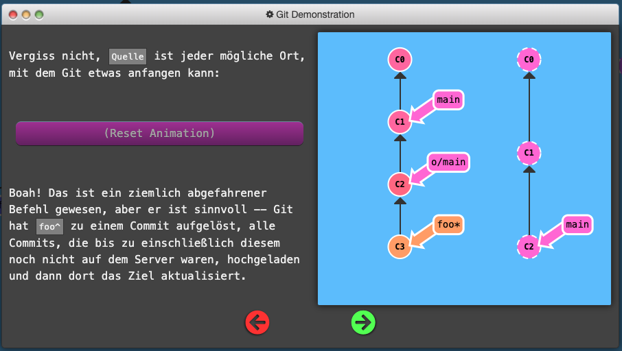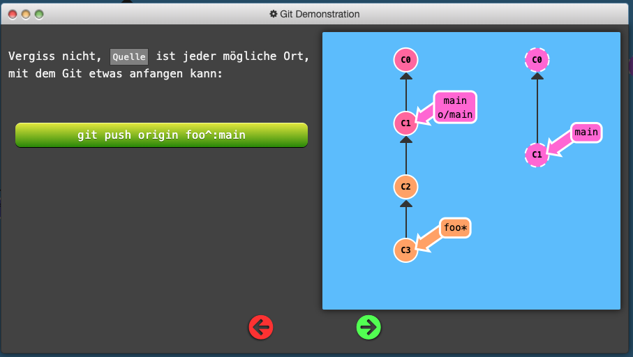 Git push origin :<“Ziel”> Deletes the “Ziel” in remote (auf dem Server) because we pushed nothing on it <“Ziel”> Git fetch origin :<“Ziel”> Creates a new branch in local called <“Ziel”> Git pull origin <“Quelle”>:<“Ziel”> The same like Git fetch origin <“Quelle”>:<“Ziel”> with a included merge after the fetch.